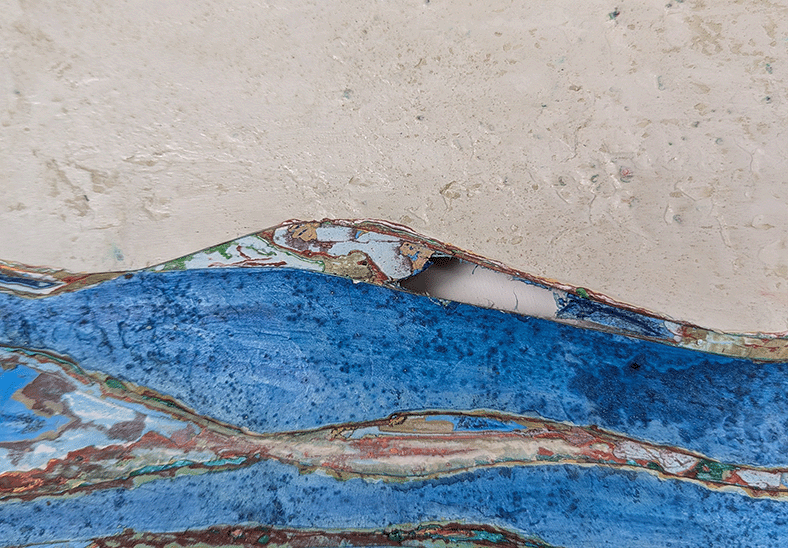 „In meiner künstlerischen Arbeit bewege ich mich nicht nur in der Malerei auf Leinwand, sondern auch in Objekten, Installationen und Performances, oft in Serien und im Austausch mit anderen Künstler:nnen. Mich interessieren vor allem psychologische Prozesse und das, was im gemeinschaftlichen Arbeiten zwischen Menschen entsteht. Wenn ich Farbe über Wochen hinweg auftrage und sie später wieder freilege oder einritze, ist das für mich eine Form von Gefühlsarchäologie: Ein vorsichtiges Offenlegen innerer Zustände, ein Nachspüren dessen, was war – und ein Akzeptieren, dass sich das Geschehene nicht mehr ungeschehen machen lässt.“